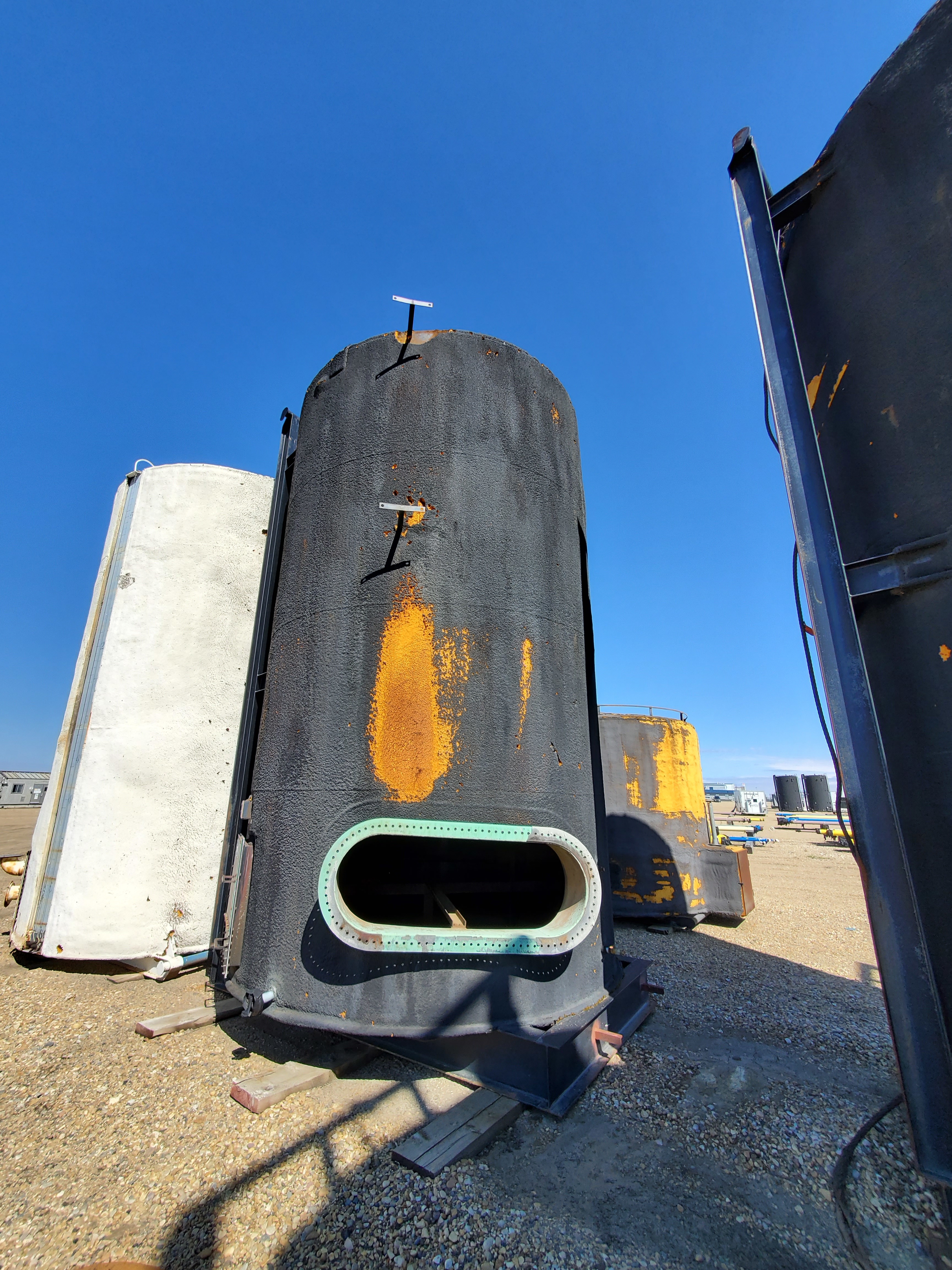 Internal coating appears intact with minor chips marked. Fire tubes and flame arrestors removed from tanks and to be shipped loose.